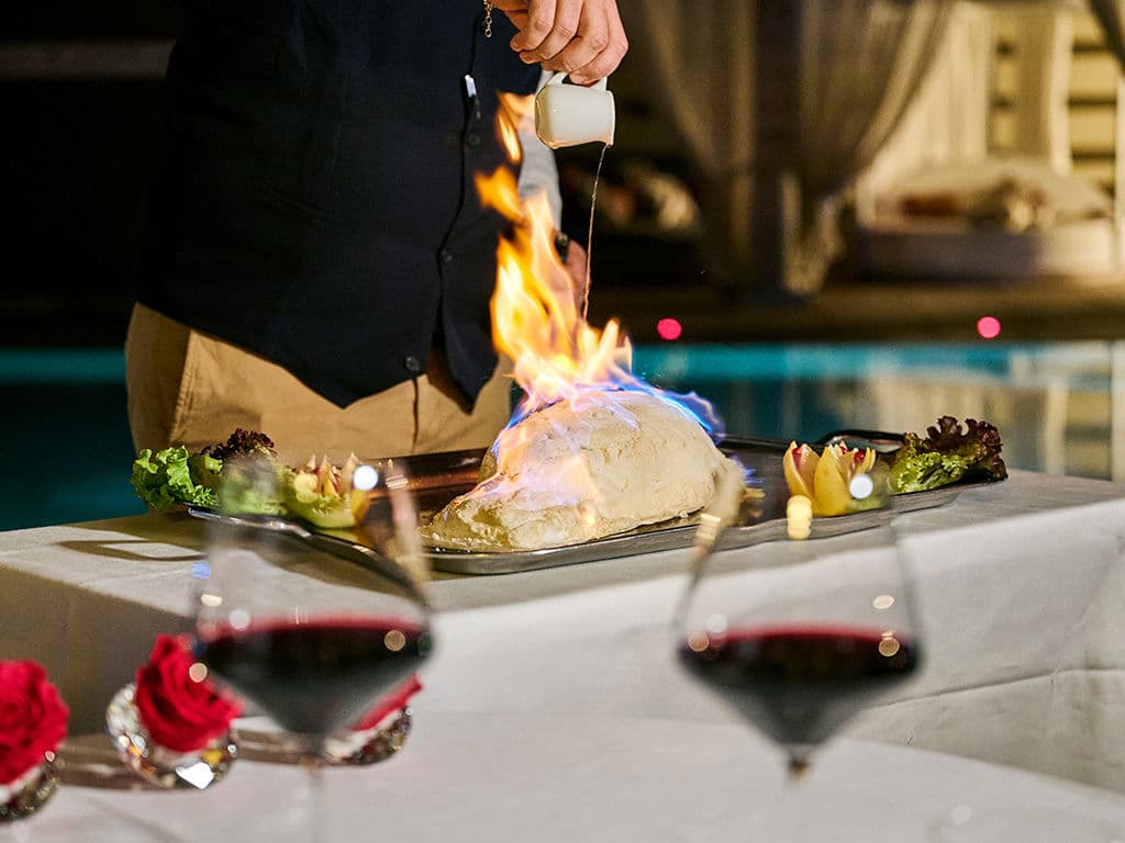 At Imperiale, breakfast becomes a gourmet experience. A large and varied international buffet in the center of the indoor hall where different types of fragrant croissants, delicious cakes, yogurt, cereals, freshly cut fruit, freshly squeezed juices, fresh extracts and centrifuges, organically grown juices and jams are served.