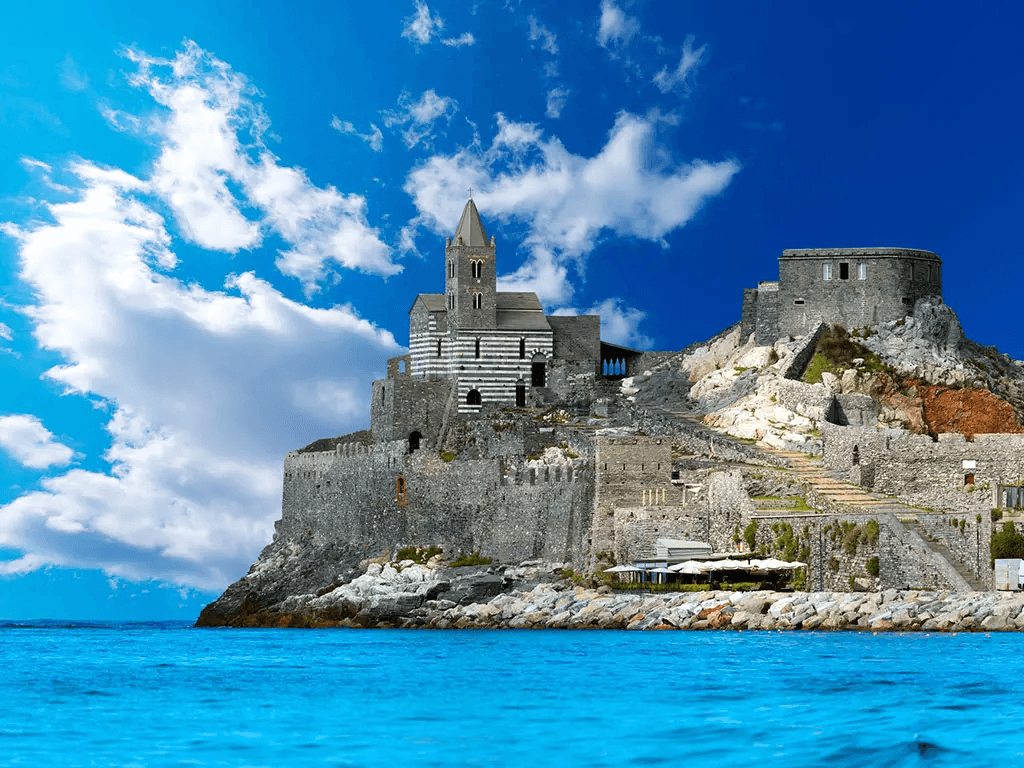 La barca si fermerà sotto il Castello di San Giorgio che domina il paese. Imbarco da La Spezia: il battello si dirigerà verso l'isola Palmaria e attraversando il canale arriverà a Porto Venere. La particolare luce del tramonto conferisce un fascino mozzafiato alle tipiche case colorate che si affacciano sul mare.